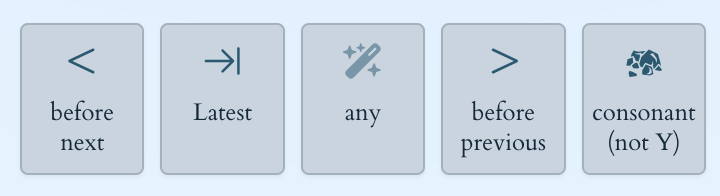 Redundant puzzle constraint: 'before next' followed by 'latest in word'